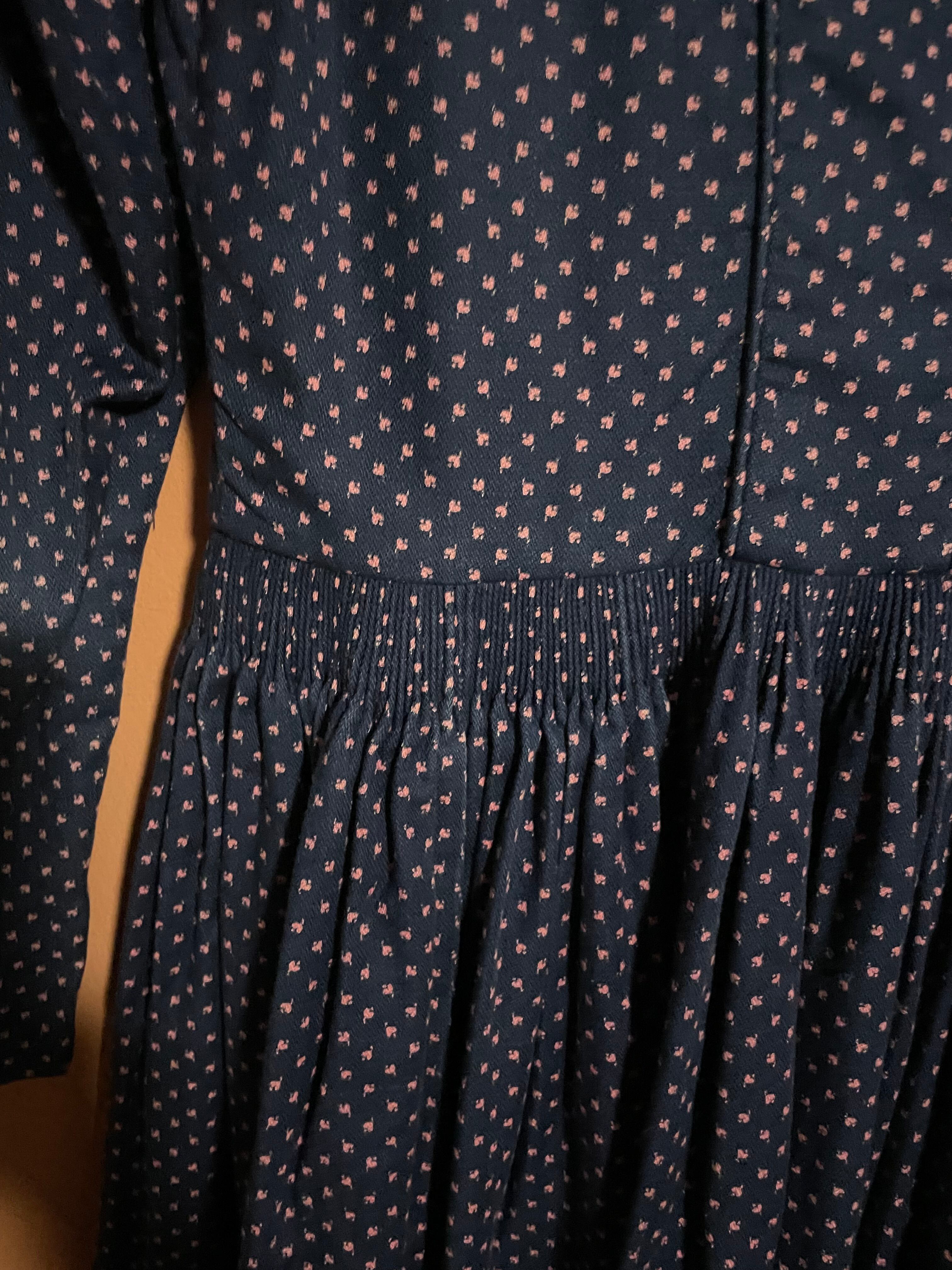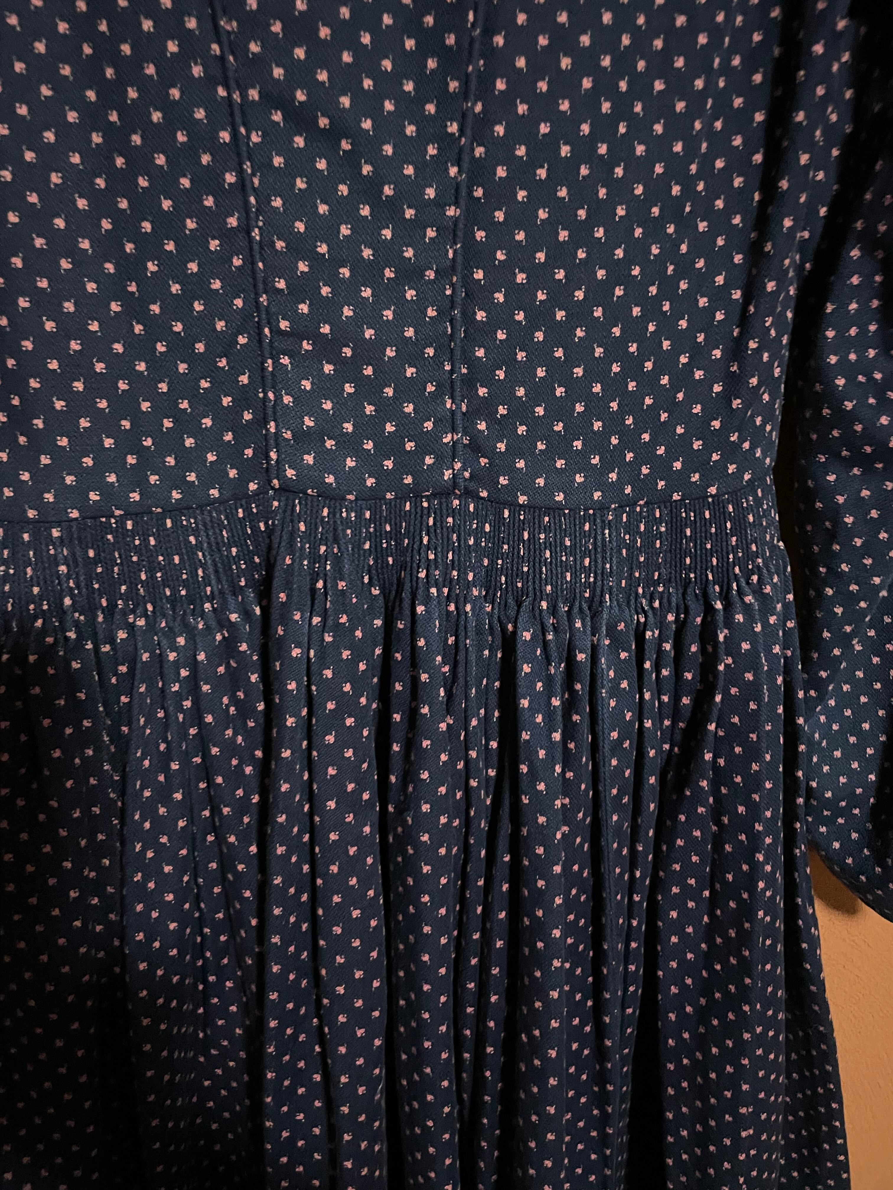 バックウエストに入っているギャザーの細やかさが素晴らしく、着るだけで様になるワンピースです