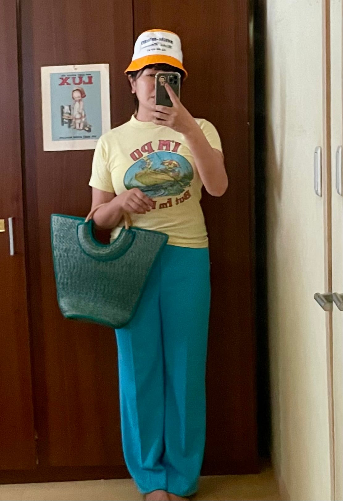 フロントのプリントはたまに見かけますが、バッグプリントの柄がなかなか出会えない1枚かと思います