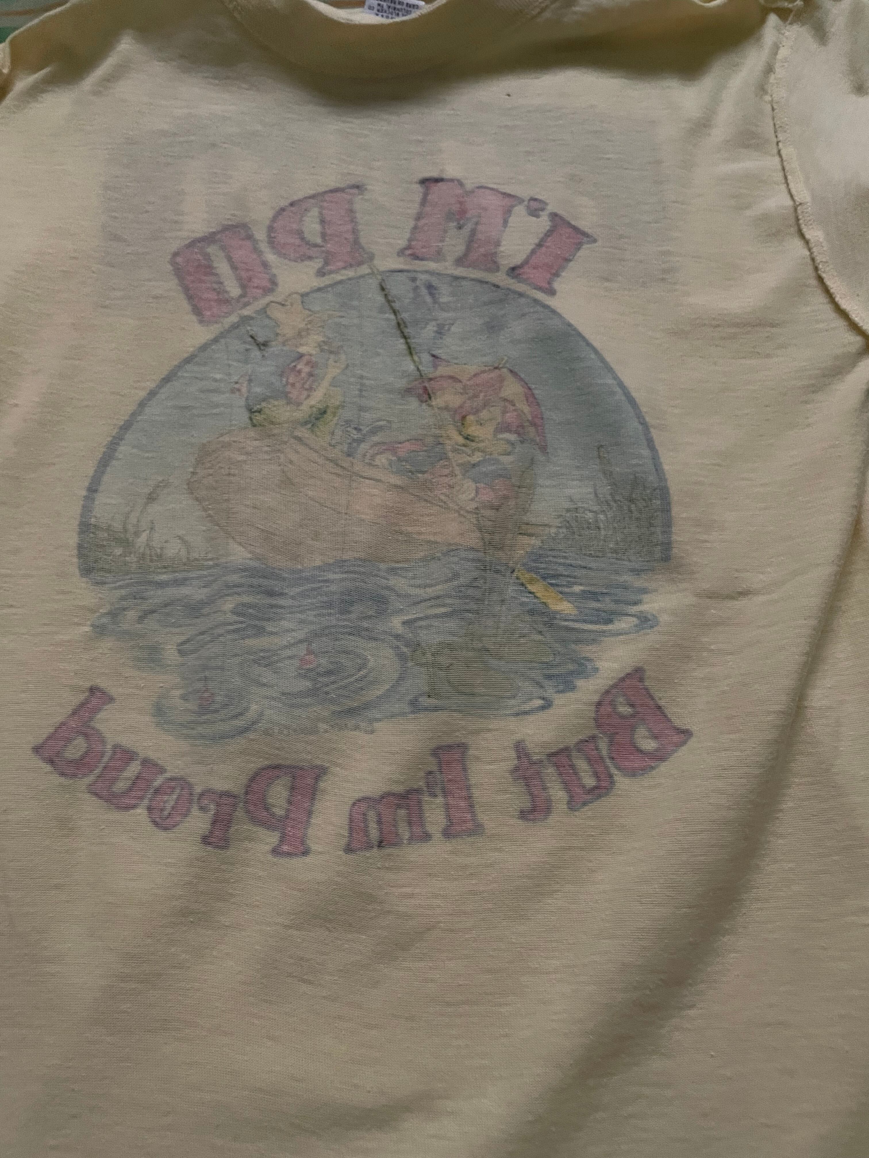 USヴィンテージTシャツ 70s yellow 釣り染み込みプリントT レストラン スーベニア
