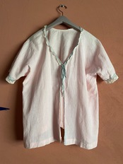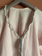 淡いピンクとシアサッカー素材が涼しげで軽くて柔らかいトップスです