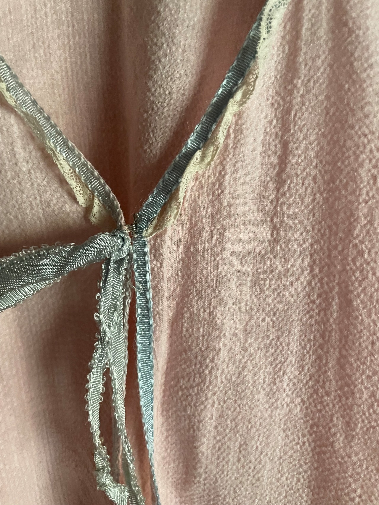 ヴィンテージ ハンドメイドシアサッカーレーストップ USvintage リボン ピンク